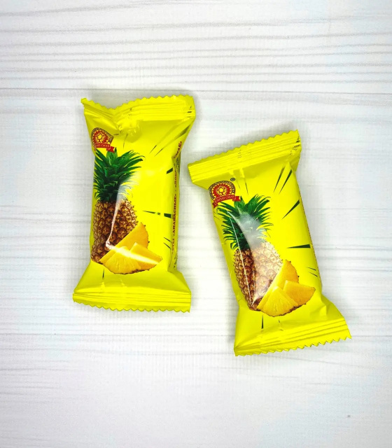 СКЛАД: Кондитерська глазур (цукор, рафінований відбілений дезодорований гідрогенізований пальмоядровий стеарин, какао-порошок, соєвий лецитин, ванілін), цукор, жир кондитерський (склад: жири рослинні та олії в натуральному та стверділому вигляді рафіновані дезодоровані, антиоксидант Е320, Е321), борошно пшеничне вищого сорту, сироватка молочна суха, яєчний продукт рідкий - охолоджений меланж, олія соняшникова (рафінована, дезодорована), розпушувач двовуглекислий натрій Е500, сіль кухонна, концентрат фосфатидний, ароматизатор харчовий: «Ананас»